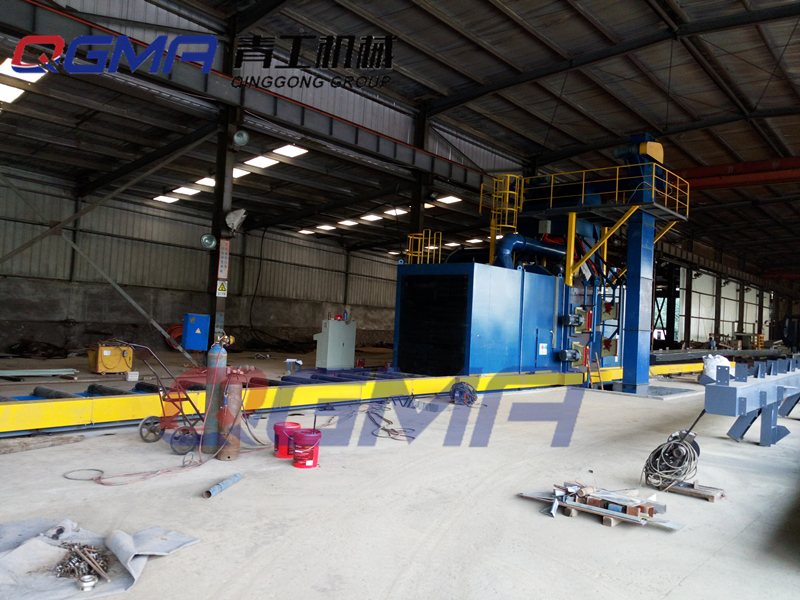 塔吊抛丸机,塔机抛丸除锈机,升降机抛丸除锈设备去除表面氧化层,增加表面油漆附着力,有利于在室外使用防止受力结构件氧化生锈引起设备安全。抛丸清理的作用是利于电机高速转动利于离心力高速将弹丸远距离投射在被清理工件表面。该工艺不受被清理工件的大小、形状、和重量限制。小至螺钉、螺母,大到火车车厢、万吨轮船壳体;简单至一件平板、复杂到发动机气缸冷却水套;轻至几克中,重到百万吨,均可采用抛丸清理。