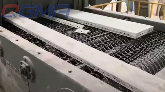 ②铝模板抛丸机清理拆装板块翻新,大、中、小块的铝模板拆装完成后可以直接放入机械输送架进入工作舱内翻新处理好处是不限制尺寸,整块翻新,无需来回翻身,一次性通过机械后达到翻新处理。
