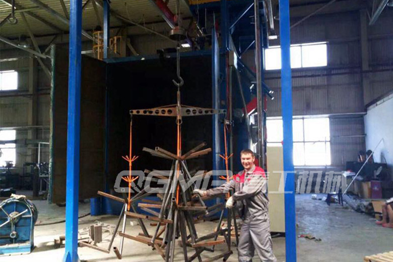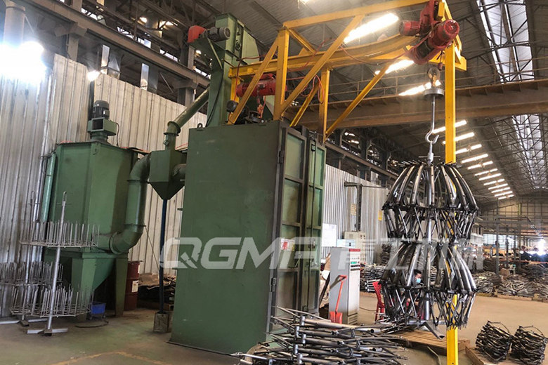 车架专用吊钩式抛丸机是专门用来清理自行车车架的吊钩式抛丸机,吊钩式抛丸机可用于清理齿轮、齿轴、锻造、铸造、建筑、化工、电机、机床等行业的中、小型铸、锻件的表面清理或强化处理,如除氧化皮、毛刺、砂铸件除砂等。