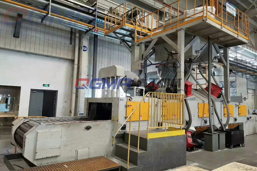 网带式除锈机能对原始状态的轮毂及铸件表面施以强力抛丸,除掉其上的锈层、焊渣及氧化皮,使之获得均匀一致的金属光泽,以提高轮毂的涂饰质量与防腐效果,网带式除锈机具有连续性好,清理效率高,无变形、无地坑等特点;即可单独使用,又可配线。