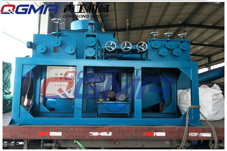 线材辊道通过式抛丸机利用外置动力牵引输送带钢材,使带钢材通过清理室,选用了先进的高效节能的抛丸器,抛射出高速密集的弹丸束,打击带材的表面上,使带材表面上的锈蚀层、氧化皮及其污物迅速脱落,暴露线材表面的缺陷,并获得一定粗糙度的洁净表面。线材抛丸机是一种利用抛丸器中高速旋转的抛丸轮然后再将一定直径的弹丸,借助抛丸轮内高速旋转的叶片,将弹丸加速到75~100m/s的速度,定向的抛射到线材的表面上,依靠弹丸所具有的动能来破坏或打碎工件表面的氧化皮并经过丸渣处理器将钢丸和锈渣分离,将锈渣彻底清除掉的抛丸清理机械设备。意昂注册生产各种线材抛丸机,适合于抛丸清除拉拔前钢丝表面的油垢及氧化皮,使钢筋线材表面获得良好的清理效果,同时消除钢筋线材的内应力,提高钢丝表面抗疲劳强度,延长使用寿命。青 工线材抛丸机具有以下优点:清理效率高1.线材抛丸机采用新型高效电机直联式抛丸器,同等功率下抛丸量大,弹丸速度快〔弹丸速度大于80米/秒〕。意昂注册生产的线材抛丸机采用双叶轮,叶片槽道收口式,增大弹丸抛射线材上打击密度,加大打击力度,提高清理效果,同时具有叶片更换方便、唯修简单等优点,更换叶片只需3~6分钟。2. 线材抛丸机采用先进BE型丸渣分离器,大大提高了分离量、分离效率,减少了循环弹丸中的含杂质量,提高了抛丸器的抛丸质量,同时减少了对抛丸器叶片的磨损。3.我公司将线材抛丸机的箱式外置抛丸器清理室,改为内置式抛丸器清理室,弹丸近距离打击在线材工件上,大大增加了清理除锈效率、效果。四台抛丸器两两间隔180度布置,增强了弹丸清理的线材的均匀性和全包围性,解决了工件在清理过程中出现“阴阳面”问题。(二)密封效果好1.考虑到抛丸清理过程中的弹丸飞逸情况,意昂注册公司生产的线材抛丸机在抛丸室工件进、出口处设有多层树脂胶帘和密封毛刷的密封箱,即当工件运行到清理工位进行清理前,树脂胶板和毛刷将室体内部的飞溅的弹丸密封遮住,彻底阻挡弹丸从室体内部向外飞逸。(三)性能安全可靠1.线材抛丸机电气控制各功能部件互锁,并保证在清理室检修门开启时抛丸器不能开启,防止弹丸伤人。2. 我公司生产的线材抛丸机的除尘器、提升机、底部螺旋输送器、检修门等都与抛丸器开启相关互锁,当抛丸器依次开启运行平稳、可靠后,弹丸闸门方能拉开,分离器内弹丸联续进入抛丸器,由高速旋转叶片抛出,打击至线材表面上,清理掉线材表面上的油垢和铁锈,线材呈现出光亮的金属光泽。实现线材工件快速输送以及连续进料、卸料和抛丸等功能.无酸洗环保线材除锈抛丸清理机该线材抛丸机集无酸洗、环保、节能、高效、使用便捷等优点于一身,其主要功能是非酸洗清除线材表面的氧化皮、油垢及锈垢,使线材表面获得良好的清理效果,同时还具有消除线材内应力,提高线材表面抗疲劳强度,延长使用寿命等特点,消除了线材酸洗除锈对环境造成的污染及对人身体造成的伤害。该设备的研制成功,改变了紧固件企业因长期使用酸洗除锈所造成的空气、地下水等环境污染又无法治理而通不过环评的现状。