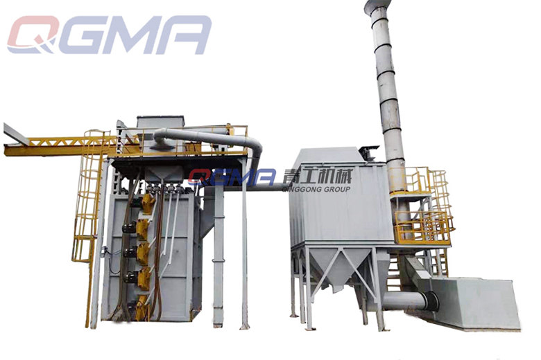 车桥吊钩式抛丸机强化清理方案,车桥是汽车重要配件之一,可以分为前车桥和后车桥,类属于铸造件,车桥在使用之前都需要使用抛丸机进行除砂、除氧化皮、金属表面强化工艺。青 工根据多年车桥用户的使用类型,推荐可以使用吊钩式抛丸机,车桥吊钩式抛丸机强化清理所使用的设备,将汽车车桥用机器的吊钩吊起来,然后,机器的电动葫芦会将车桥勾起并且输送进抛丸清理室内。车桥吊钩式抛丸机的抛丸器,高速甩出钢丸,这些钢丸打击到车桥的金属表面,除去砂土、氧化铁、铁锈等杂物,并且提高了汽车车桥的金属表面晶体的硬度。增加了汽车车桥的金属表面的粗糙度,这样会为涂漆的漆料和汽车车桥的金属面更有附着力,这也是汽车车桥进行防腐工艺,一个重要的环节。机器配有除尘器,所以不必担心粉尘污染,符合国家的环保严查要求。