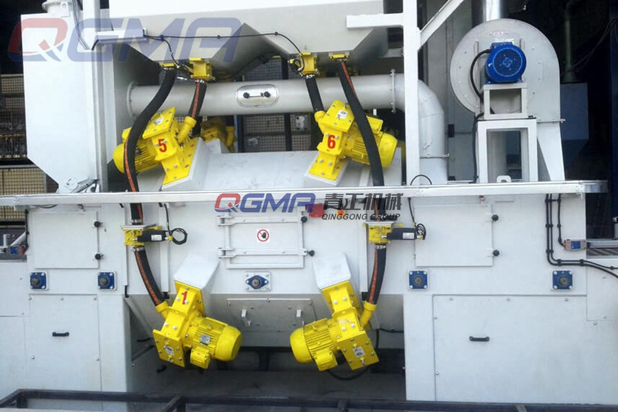 汽车水泵网带式抛丸机的磨料流量控制磁阀,能实现精确、可调和可重复的磨料流量控制。无论使用钢丸或钢砂,该流量控制磁阀能确保实现每分钟1,000 lbs. 的丸流量,电磁控制器进行流速控制。方便安装的控制装置,具备远程和近程控制能力,缩短生产时间,提高产能,最优化丸流量。除此之外,汽车水泵网带式抛丸机的抛丸室体及抛丸器的布置方式经计算机三维动态抛射仿真后确定。采用高抛射速度的 SPA 皮带联动高速轴座离心式抛丸器,显著地 提高清理效率、获得满意的清理质量且有效避免弹丸阻塞烧毁电机的情况发生。 护板热区厚度达70mm,特殊分丸结构(9 向导丸翼)使弹丸利用率最大化至 95%,抛丸室体采用 10mm 厚钢板焊接而成箱型结构,强度高而不会产生振动。内部 采用 护板采用止口衔接,有效的延长了室体的使用寿命, 并能充分利用弹丸的反弹形成二次清理。 前后密封附室采用活页弹簧密封 V 形装置,可有效的阻止弹丸飞溅,并降低构件 对密封的磨损和刮裂,其余密封层采用高耐磨胶板密封。 为了减少丸料下落过程中对底部料斗的摩擦,在料斗上均含有缓冲角钢。 为防止工件上料不正在运行过程中发生跑偏,在网带两端均做有挡盘。 可以根据工件的大小来确定抛丸器的开启数量,这样可以减少不必要的能量浪费, 同时减少对设备不必要的破环。