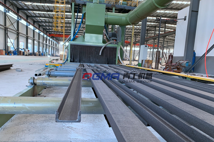 湖北槽钢抛丸机能够自动清灰,特别环保,符合国家环保要求,用槽钢抛丸机对工件外表面进行喷砂除锈,除锈效果比较均匀而且抛丸效果特别好!喷丸射流垂直于待喷涂表面时,喷丸强度高,应保持在这种状态。如果零件的形状受到限制,在需要小角度喷丸时,应适当增大喷丸的尺寸和速度。