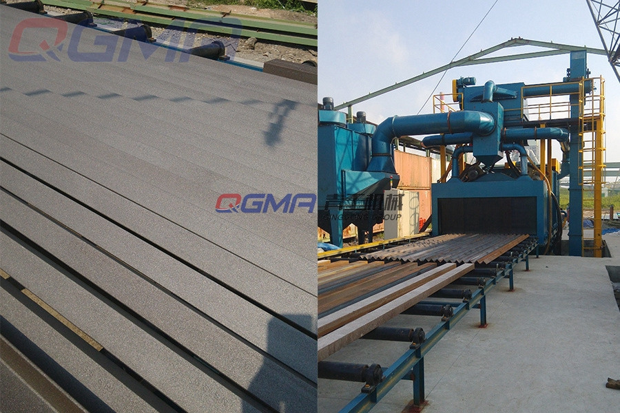 辊道输送式抛丸机可对钢板和尺寸合理的方钢、扁钢、钢板及各种结构件进行一次性通过清理。不但可以去除工件表面的锈蚀,清理掉结构件上的焊渣,还可以消除工件的焊接应力,提高工件的抗疲劳强度,增加工件喷漆时的漆膜附着力,并最终达到提高表面及内在质量的目的。