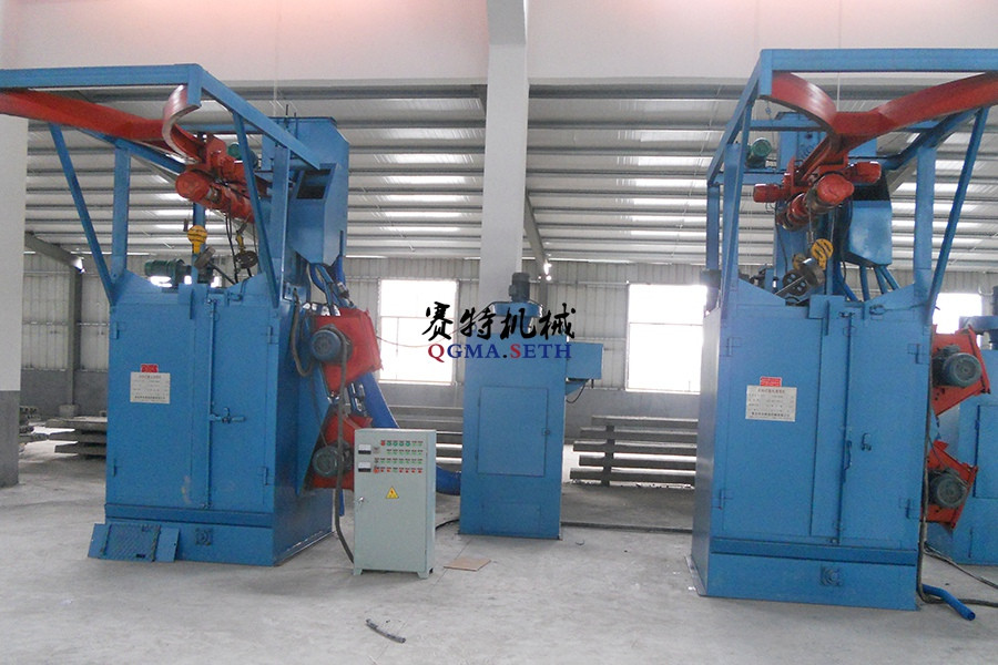 摩托车油箱吊钩式抛丸除锈机的标准机型,其工作圆筒直径从900到1300 mm, 高度从1300 到3500 mm. 标准机型带有2-7个抛头,承载量达10000公斤,,这款的生产效率相当高,灵活性跨度也相当大,是理想的清理强化设备,并且操作简便,只需将要处理的工件装载上机器,按下启动按钮,经过一个很短的时间(一般为5-7分钟),即完成了整个清理过程,清除掉所有粉尘和残余丸料,主要适用于各种中、、、焊件、热处理件的表面处理,包括易碎和形状不规则的工件。适用于多品种,中、小批量的及铆焊件的表面清理或强化,尤其对碰的细长薄壁件表面清理或强化更为适宜。它能够对处于原始状态的钢材表面施以强力的抛丸,清除其表面锈斑和焊渣及氧化皮使之获得一定光洁度均匀一致的金属光泽表面,以去除应力,提高钢材的表面涂饰质量与防腐性能。
