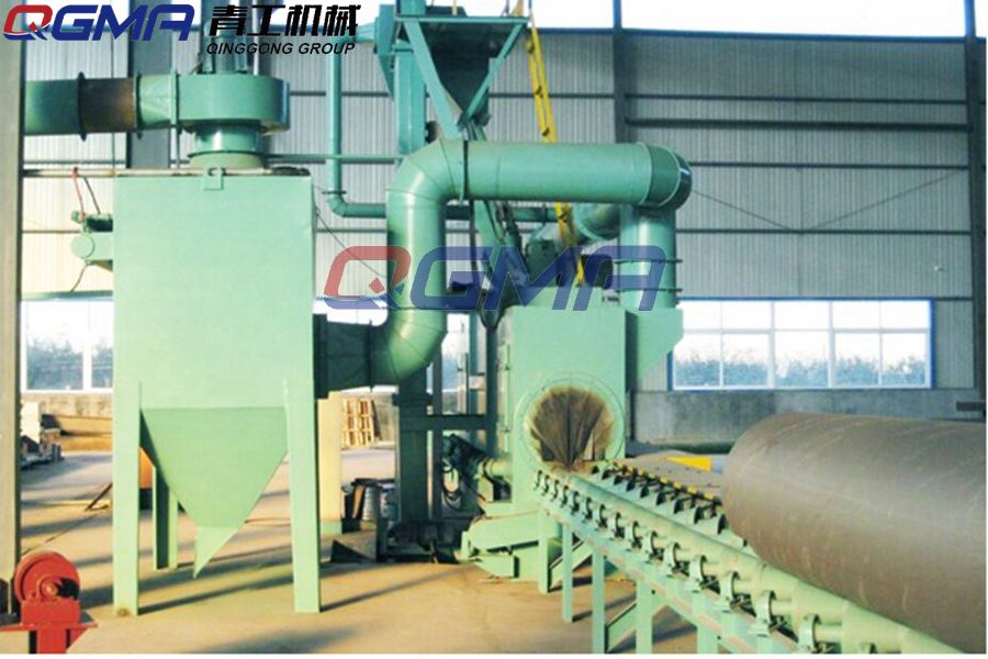钢管专用抛丸机适用于大、中型钢管的表面清理和强化。经过清理后的钢管呈现银白色的金属光泽,其表面抗拉、抗压强度提高。钢管专用抛丸机为通过式,辊道连续输送工件,边移动边旋转,不需人工上料,生产效率高,清理效果好。钢管专用抛丸机适用于钢管及钢管类产品的表面处理,去除其表面氧化皮,焊渣等杂物,呈现出金属光泽,增加其表皮面积,以利于工件表面的喷涂及涂敷广泛应用于石油化工、钢铁、城市集中供热、供排水等行业。