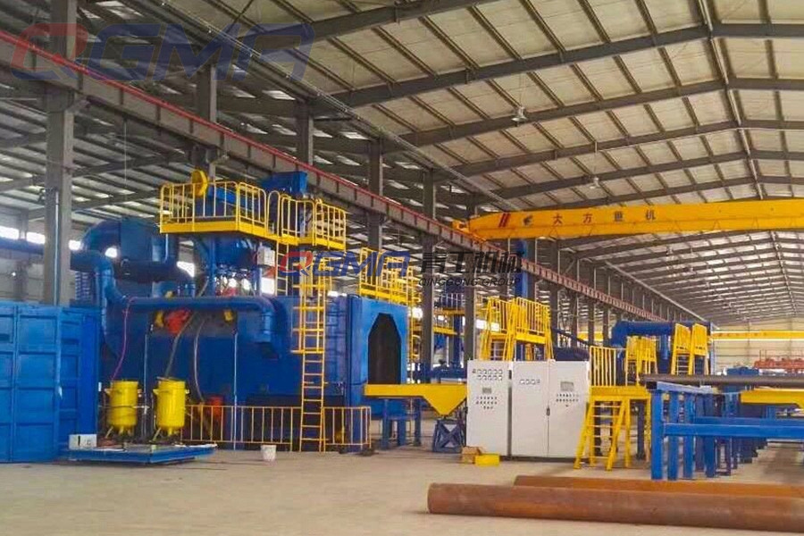 三明钢管除锈设备采用辊道输送工件,减少了对工件的碰撞、损伤现象,降低了机器的噪声;钢管除锈设备采用悬臂离心式抛丸器,具有使用寿命长、结构简单、故障率低等特点;钢管除锈设备采用风选式分离器,具有良好的分离效果和较高的生产率,对提高叶片寿命有积极的作用。