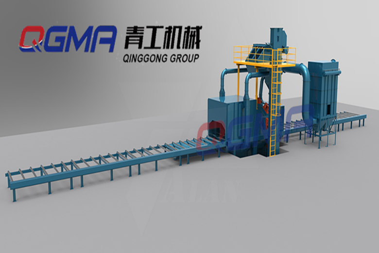 仓储货架抛丸机主要用于清理货架、货柜等结构件的表面除锈问题。