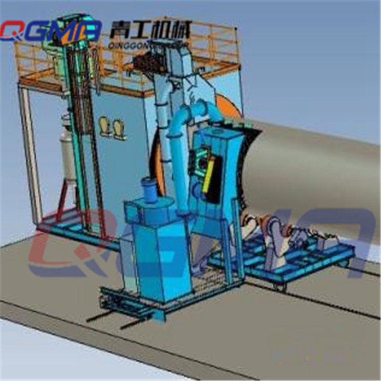 风电塔筒抛丸机意昂注册辊道风电塔筒通过式抛丸机在清理过程中由电器控制可调速的输送辊道将钢结构件或钢材送进清理机室体内抛射区,其周身各面受到来自不同坐标方位的强力密集弹丸打击与磨擦,使之其上的氧化皮、锈层及其污物迅速脱落,钢材表面就获得一定粗糙度的光洁表面,在清理室外两边进出口辊道装卸工件。落入钢材上面的弹丸与锈尘经吹扫装置吹扫,撒落下来的丸尘混合物由回收螺旋输送到室体漏斗、纵横向螺旋输送机汇集于提升机下部,再提升到机器上部的分离器里,分离后的纯净弹丸落入分离器料斗中内,供抛丸循环使用。抛丸清理中产生尘埃,由抽风管送向除尘系统,净化处理后的净气排放到大气中,颗粒状尘埃被捕捉收集。