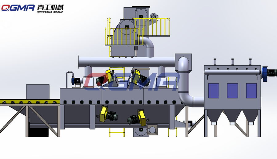 铝合金模板行业的高效自动化抛丸机,该设备可有效解决铝合金模板施工后残留在模板上的各类水泥杂质等,替代传统的化学清理、人工清理方式,清理效果好,无死角,清理速度快,效率高,处理后的模板可以直接使用,可有效降低模板企业的作业成本。