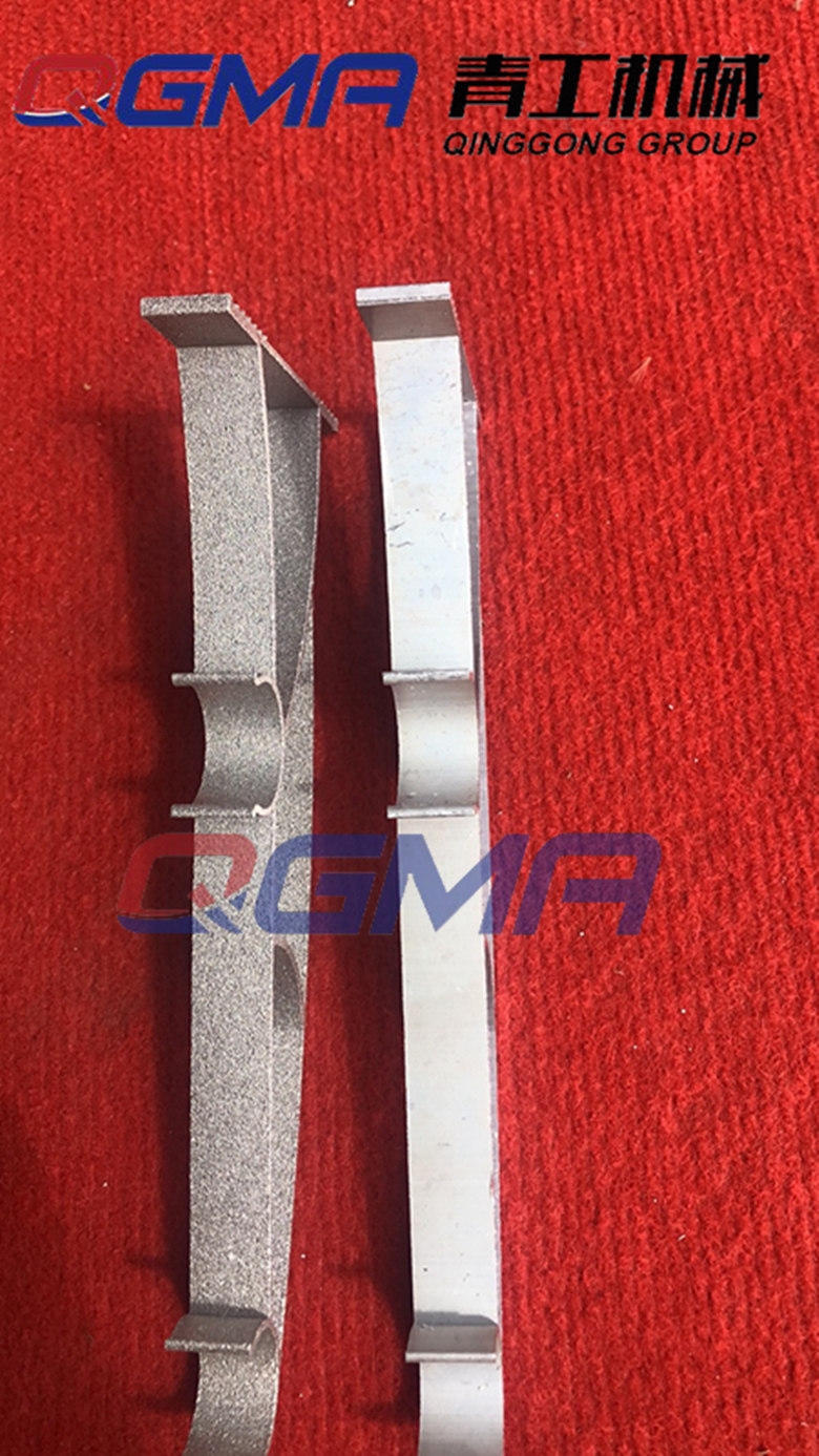 铝支架抛丸机采用履带式抛丸机,橡胶履带形成的凹腔作为工件承载体。工作时,履带转动,带动凹腔内的工件翻滚,因此零件的内外表面均能获得较好的清理效果。主要清理:铝支架,窗帘架支架等对工件的毛刺去除及表面形成磨砂面