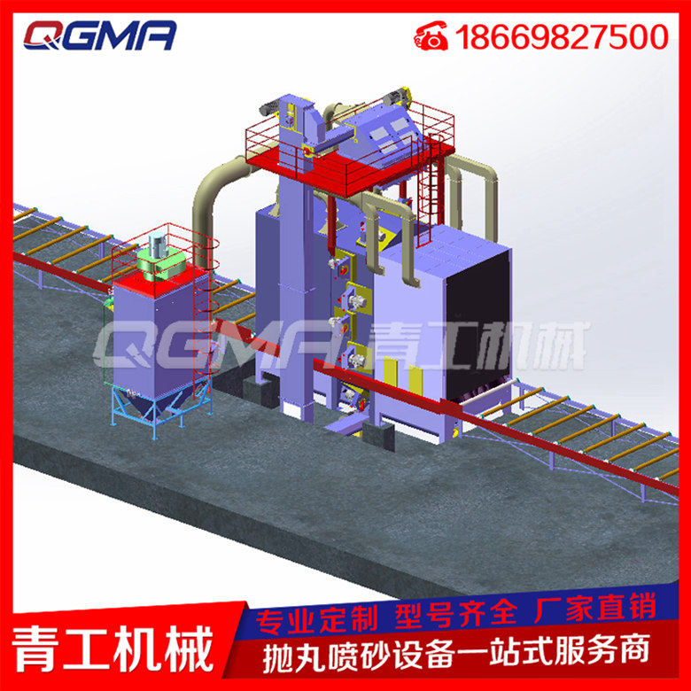 意昂注册辊道通过式抛丸机在清理过程中由电器控制可调速的输送辊道将钢结构件或钢材送进清理机室体内抛射区,其周身各面受到来自不同坐标方位的强力密集弹丸打击与磨擦,使之其上的氧化皮、锈层及其污物迅速脱落,钢材表面就获得一定粗糙度的光洁表面,在清理室外两边进出口辊道装卸工件。落入钢材上面的弹丸与锈尘经吹扫装置吹扫,撒落下来的丸尘混合物由回收螺旋输送到室体漏斗、纵横向螺旋输送机汇集于提升机下部,再提升到机器上部的分离器里,分离后的纯净弹丸落入分离器料斗中内,供抛丸循环使用。抛丸清理中产生尘埃,由抽风管送向除尘系统,净化处理后的净气排放到大气中,颗粒状尘埃被捕捉收集。