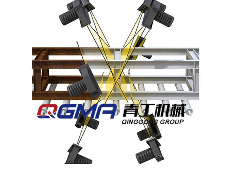 分为室内输送辊道和装卸料段输送辊道。 室内辊道外套高铬耐磨护套及限位环,高铬耐磨护套用于保护辊道,承受弹丸打击,限位环可使工件按预定的位置运行,防止跑偏,造成事故。