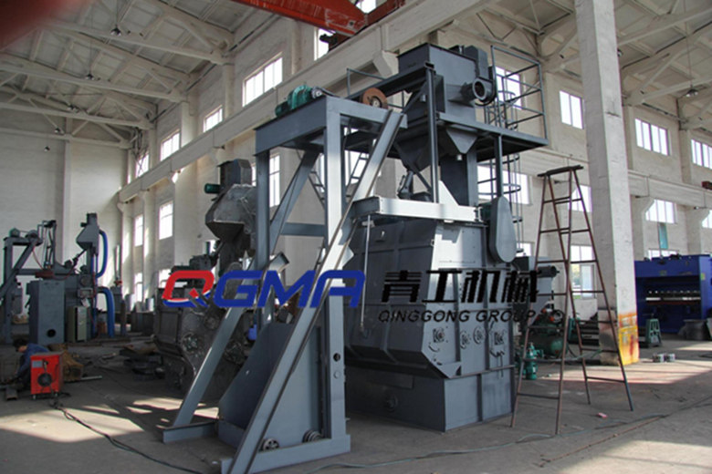 履带抛丸机又称履带式抛丸清理机是综合国外技术研究设计的新产品,采用新型、高效单圆盘抛丸器、橡胶带围成的假设性滚筒使被清理的工件翻滚均匀且减少碰撞,清理效果好,工作完毕可自动卸料,本机广泛用于中小型铸、锻件、冲压件、有色金属铸件、齿轮及弹簧的洁砂除锈、去氧化皮和表面强化,整机配有除尘器,达到国家环保排放标准。噪音低、占地少、性能稳定、安全可靠,是国内优良而理想的清理设备。履带抛丸机的工作原理是在清理仓内加入规定数量的工件后,大门关闭,机器启动,工件被滚筒带动,开始翻转,同时抛丸器高速抛出的弹丸形成扇形束,均匀地打击在工件表面上,从而达到清理的目的。