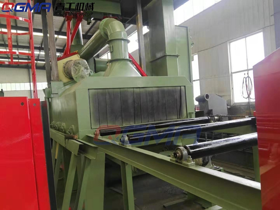 摘要:提出了一种薄板抛丸清理装置,其中薄板抛丸清理装置,包括,吹丸装置,设置于所述薄板抛丸清理装置的一端,用以吹掉抛丸后残留下来的残留物;回收螺旋输送器以及抛丸清理室,抛丸清理室外壁上安装有4台抛丸器,且抛丸器设置为与工件的抛射角度成α°,且满足20°≤α°≤40°;采用相同布置方式的4台抛...